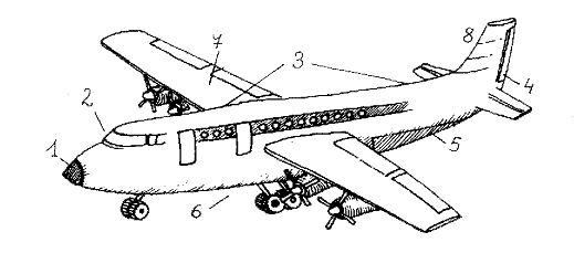 PARTS OF THE AIRCRAFT. Match the indicated parts of the aircraft with their names